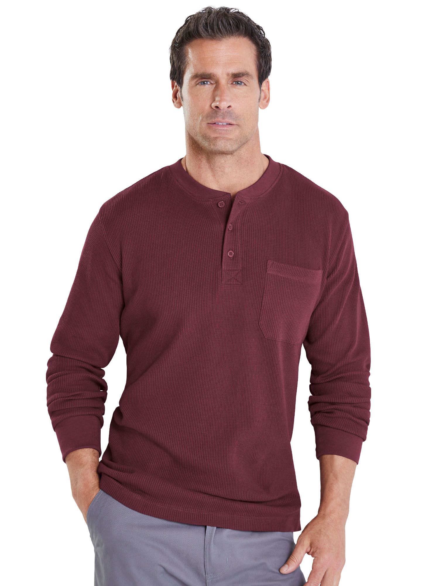 Haband Men S Thermal Henley Shirt With Pocket Solid Print